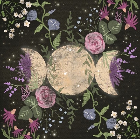 Kép: Pinterest – A hármas Hold, azaz a Hold három arca: a növő Hold, a telő Hold és a fogyó Hold.
